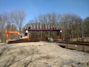 The Canopy bridge over the trolley tracks near Mattapan Station was installed on Saturday, April 16. The Dorchester Reporter wrote about it.
