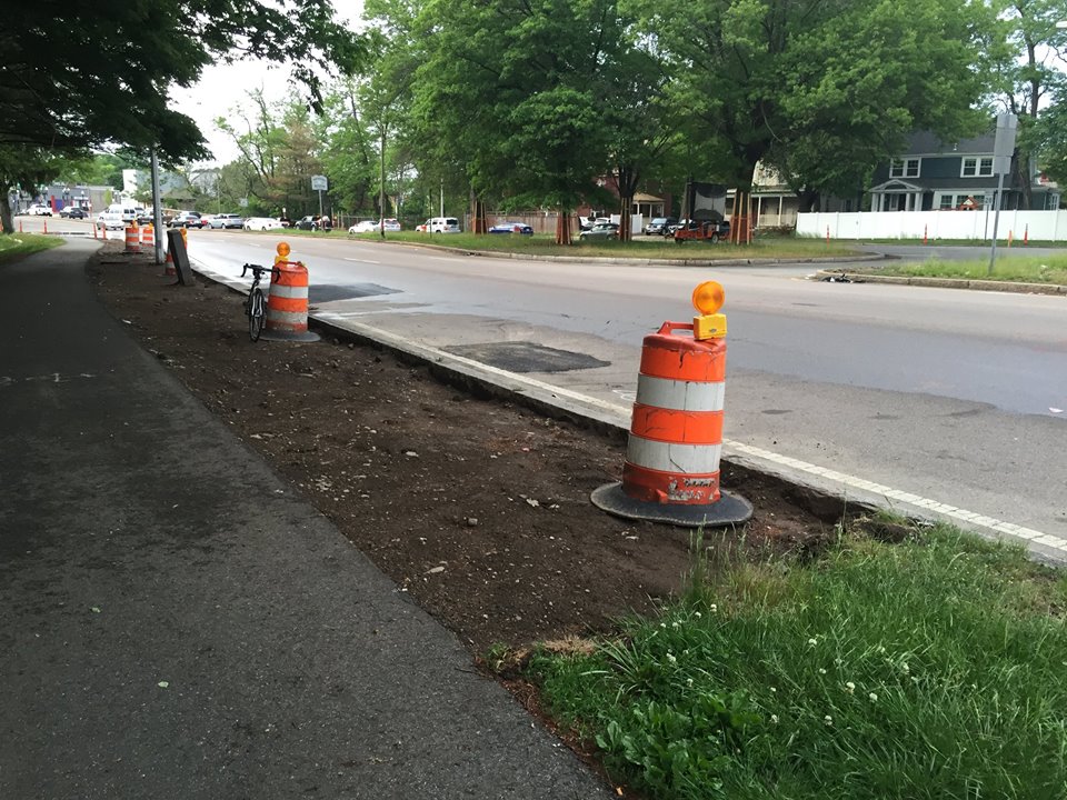Construction has begun on a trail crossing of Blue Hill Parkway just south of Mattapan Square.