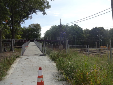 TheCanopy Bridge is surfaced but needs railings, but the Harvest River Bridge still needs a surface AND railings. We're looking forward to a soft opening from Mattapan Square to Central Ave. around mid to late November. (Photos by Jessica Mink)