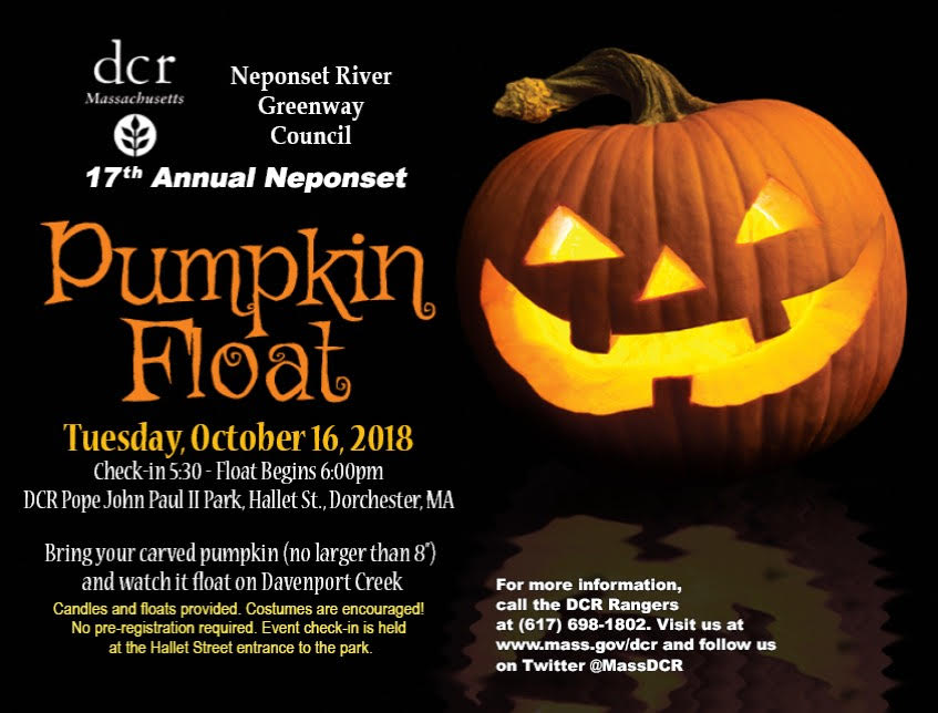 The annual Pumpkin Float will be held in Pope John Paul II Park on Tuesday, October 16 at dusk. Show up after 5:00. Attendees' carved and lit Jack-O-Lanterns will be released around 6:00 pm. (Photos by Jessica Mink)