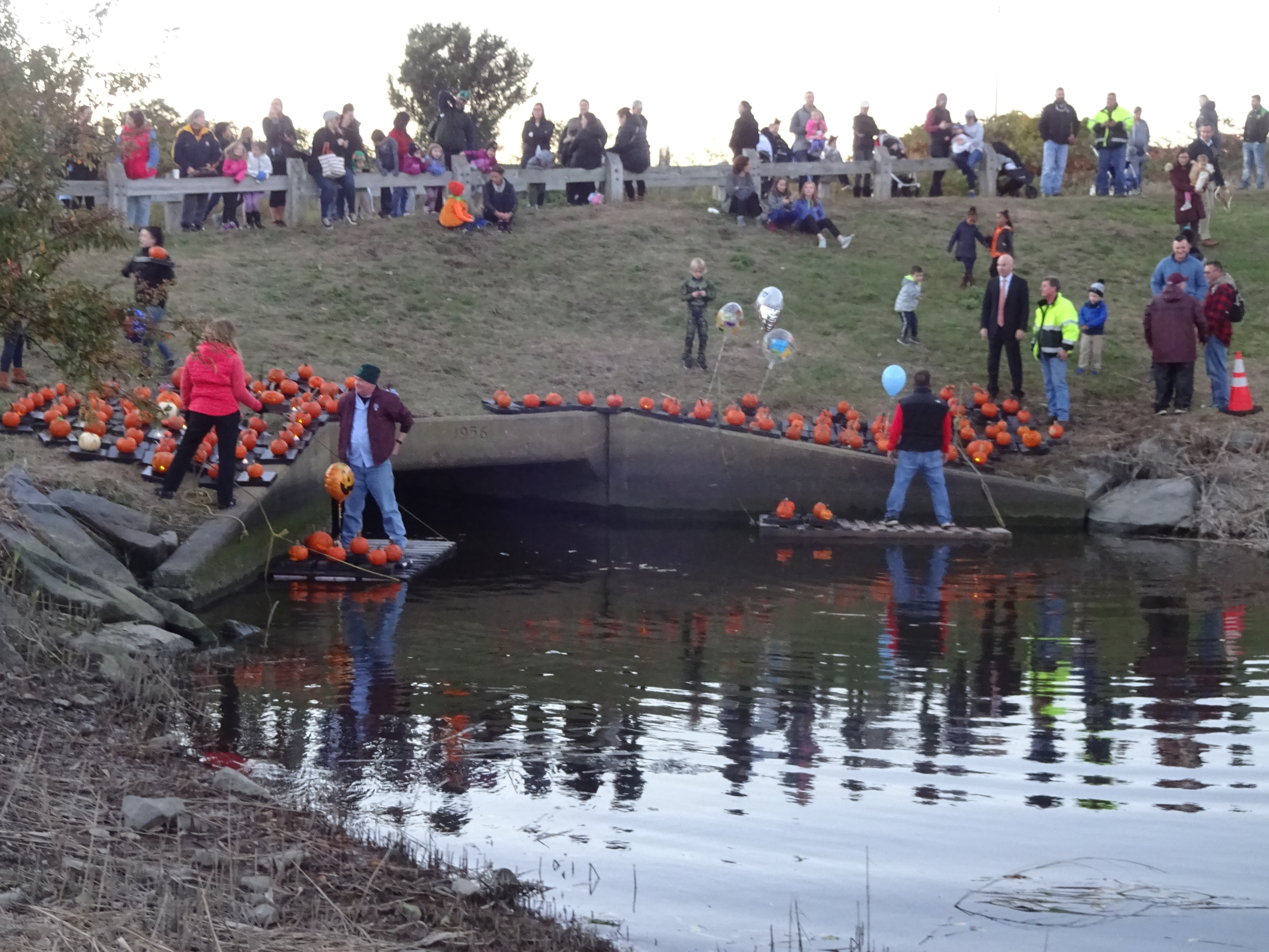 Pumpkins float on the outgoing tide promptly at 6:00 pm.